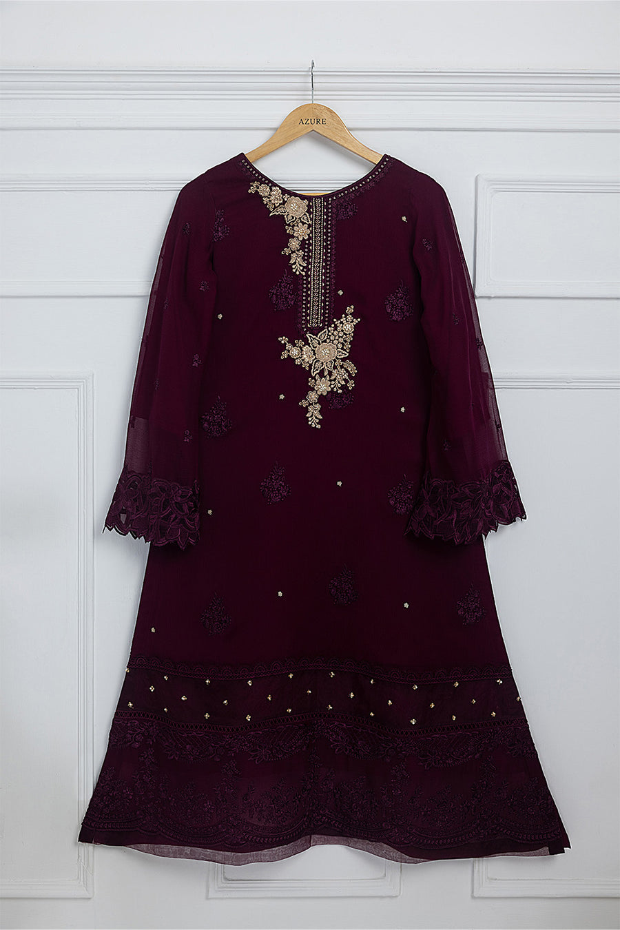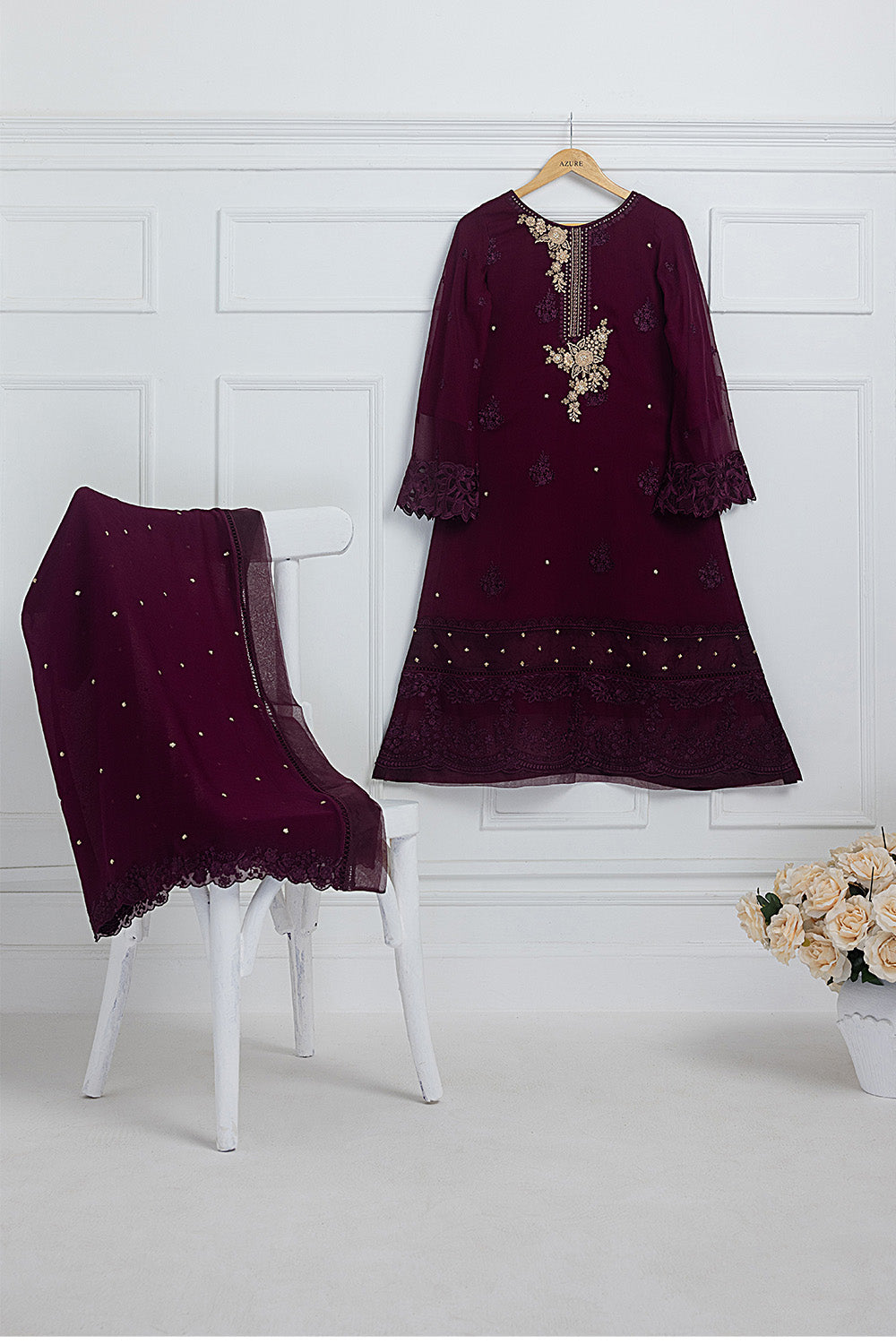 Description: This festive season, brighten up your occasions with this gorgeous burgundy chiffon silhouette. Eye-catching details on the neckline are done with delicate handwork of shimmery sequins and lustrous pearls. The sleeves of this remarkable canvas are beautified with floral lace, which enhances the overall allure of this design. To complete this ensemble, a matching chiffon dupatta is included. Making you look stunning anywhere you go.