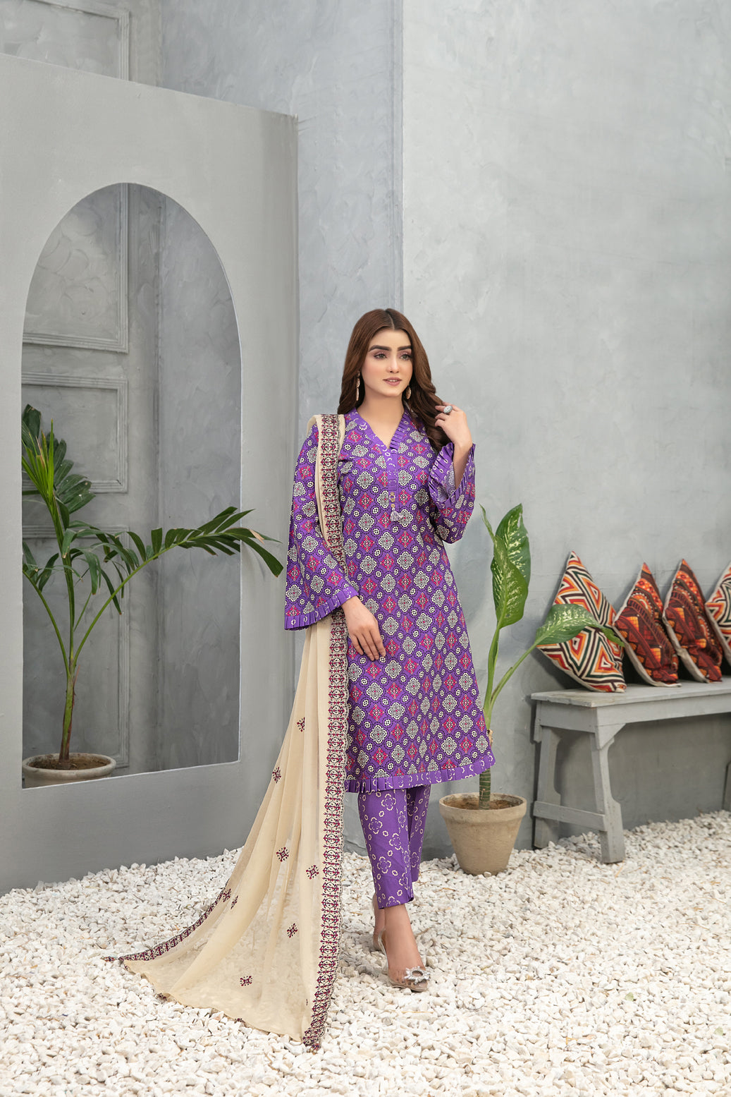 Package Includes: 3 piece - Top, Bottom & Dupatta