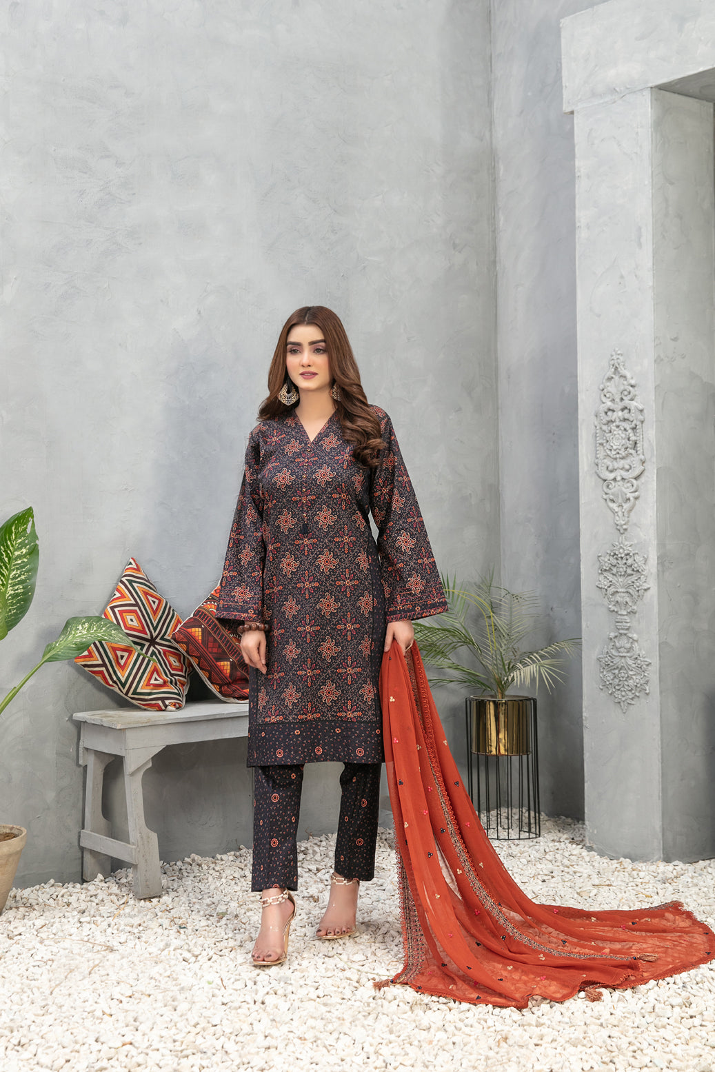 Package Includes: 3 piece - Top, Bottom & Dupatta
